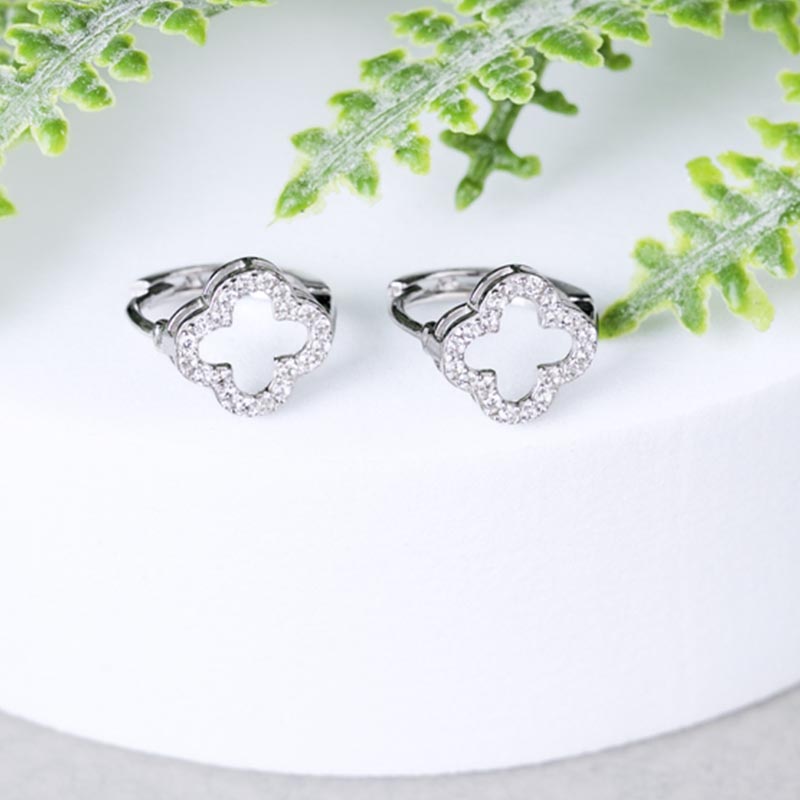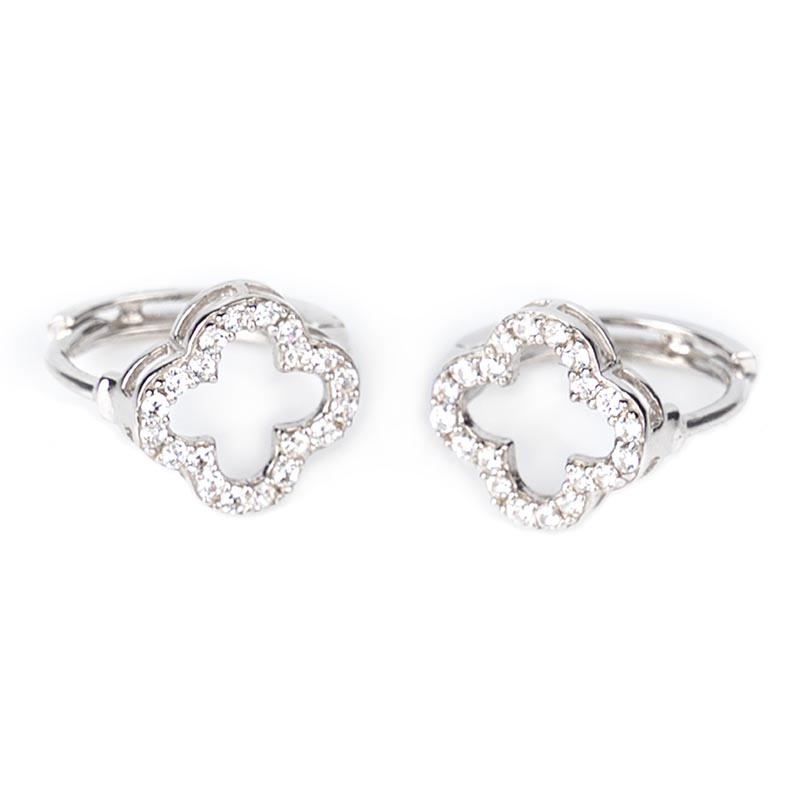 ARRACADA TIPO HUGGIES EN ORO BLANCO DE 14 KILATES CON CIRCONIAS DISEÑO ITALIANO